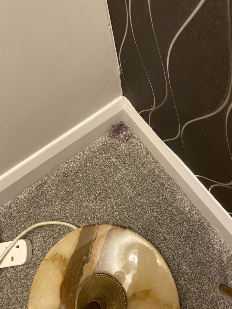 Once this was done, I then moved on to blessing and protecting my space. I wanted to keep any negative energies out of the place in the future, and make my place as if invisible to anyone with malicious intent. So for this, I got my hands on 4 amethyst crystals and I placed them in the four corners of my house.