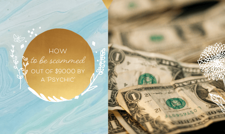 2. If you find yourself handing over massive sums of money to a psychic (I’m talking huge amounts like $9000) to have ‘work’ done, you’re being scammed. Getting energy work done is not like having a new kitchen put in or a new website created. It’s not a huge job that takes weeks, many man-hours and involves lots of materials. It shouldn’t usually cost more than a few hundred bucks. If it does, you’re most likely being scammed.